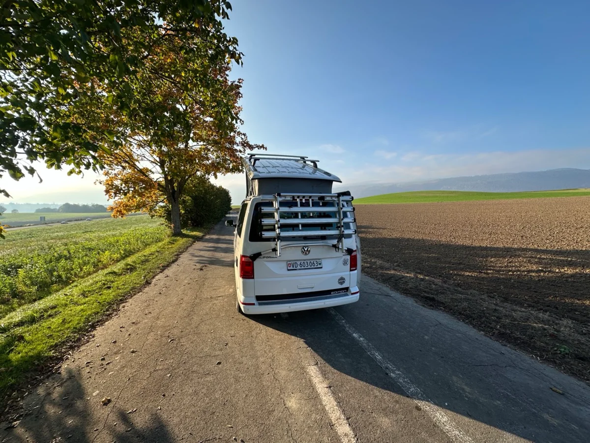 Dans les options, il est livré avec des housses de sièges sur les 4 places, des barres de toit si vous voulez mettre une box, un canoë, des planches à voile, un SUP. J'ai aussi inclus un porte-vélos VW, pour mettre 4 vélos pour les aventures en famille ou entre potes.