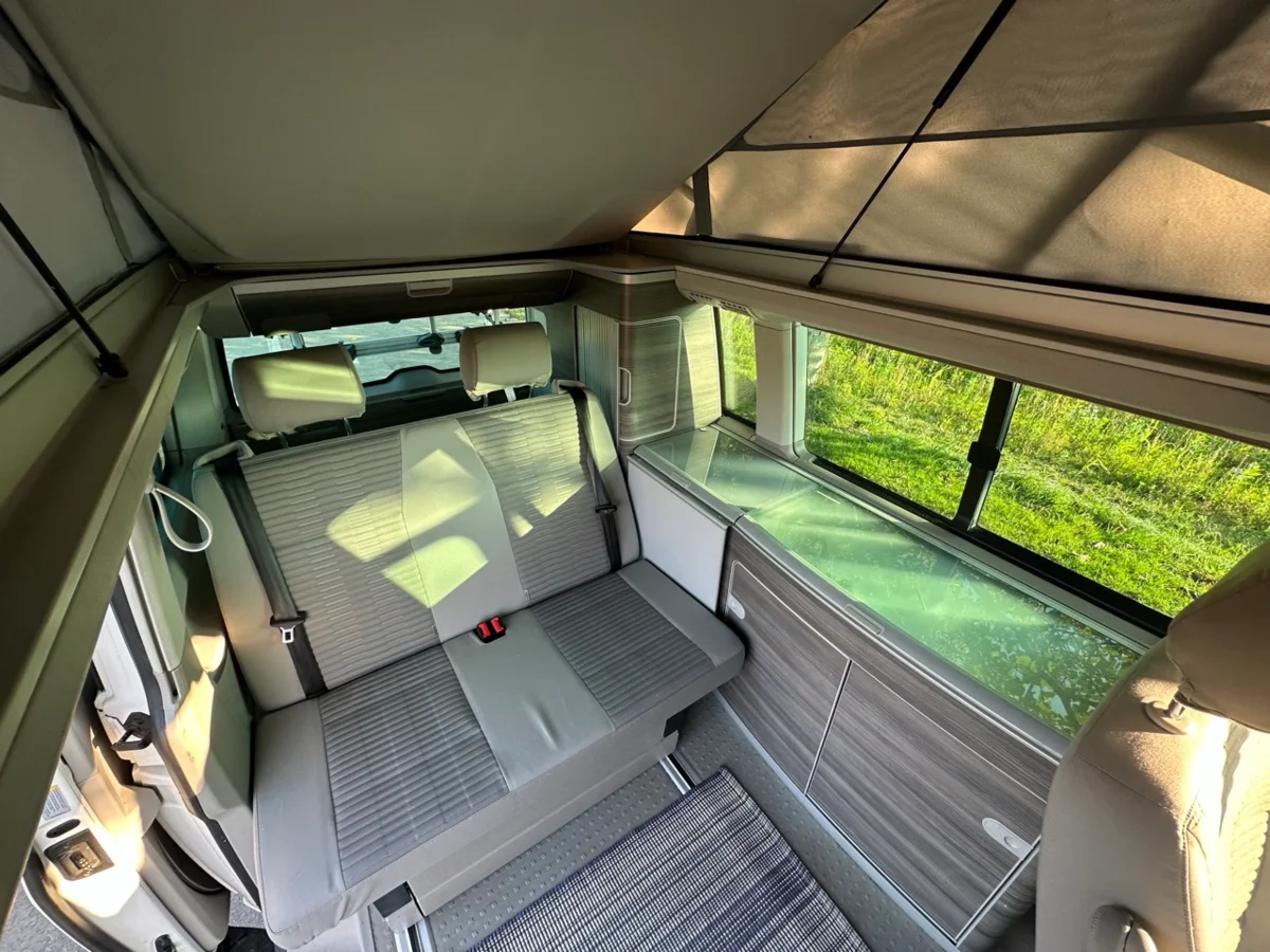 L'habitacle est très modulable avec la possibilité de bouger la banquette arrière sur rail et de tourner les sièges avant de 180 degrés. Pour plus de confort, vous avez aussi un chauffage stationnaire qui fonctionne sur le réservoir de diesel du moteur, donc c'est tout à fait possible de dormir dans votre California même en hiver.