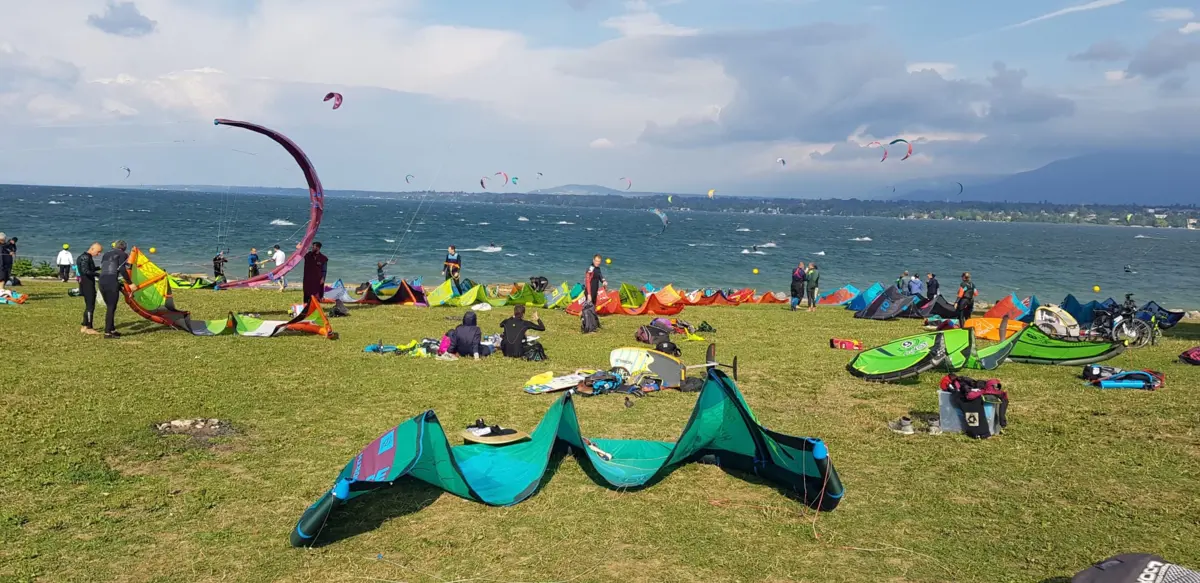 The Vengeron spot is very nice, you rig your kite on the grass, the wind blows full force on the launch area, if it wasn't for that damn water entry, the spot would be perfect! But once on the water, the slightly tricky passage through the rocks is quickly forgotten! One thing to note is that the small lake is forbidden to kites from the (virtual) line Vengeron-Square Tower. So once on the water, don't forget to quickly head upwind.