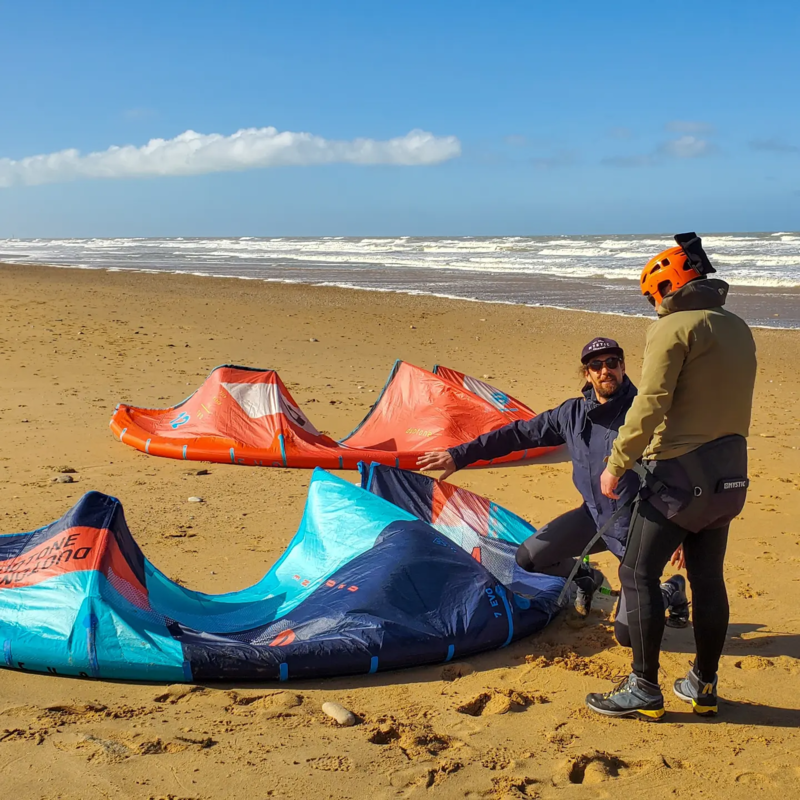 Débuter le kitesurf, c'est avoir besoin de conseils adaptés à sa personnalité en permanence. A partir de ce constat, les cours collectifs atteignent vite leurs limites et génèrent souvent la frustration des élèves et du moniteur qui ont tous envie de la meilleure qualité d'apprentissage. C'est pourquoi Olonne Kitesurf privilégie les cours particuliers jusqu'à ce que vous soyez capables d'évoluer en autonomie.